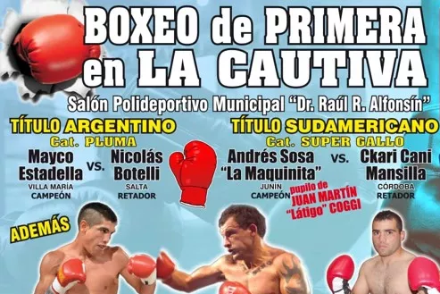 El invicto bonaerense Andrés “Maquinita” Sosa, campeón sudamericano súper gallo, arriesgará por primera vez su corona ante el cordobés Ckari Cani Mansilla, en una de las peleas estelares de la velada a desarrollarse este sábado 20 de marzo en el Salón Polideportivo Raúl Alfonsín, de La Cautiva, departamento de Río Cuarto, Córdoba, Argentina.