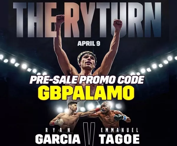 Es oficial, la promotora Golden Boy Promotions confirmo que el ex campeón mundial interino ligero del Consejo Mundial de Boxeo (CMB), el californiano Ryan García, regresara ante el contendor ganes, Emmanuel Tagoe, en la estelar del próximo sábado, 9 de abril, en el Alamodome de San Antonio, Texas.