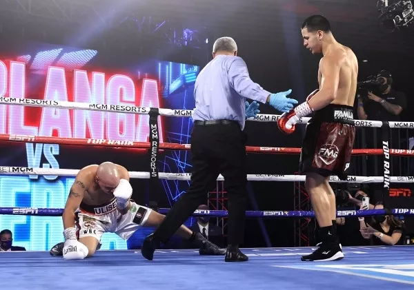 El boricua Edgar Berlanga derroto, por nocaut en el mismo primer asalto, a Ulises Sierra, en una atracción especial del sábado desde "La Burbuja" del MGM Grand Las Vegas.