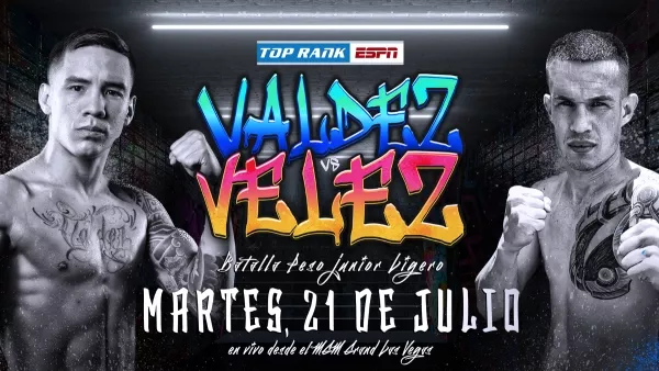 El ex campeón mundial peso pluma Oscar Valdez, clasificado No. 1 por el CMB y la OMB en el peso junior ligero, se enfrentará al ex retador de título mundial Jayson Vélez en un choque estelar a 10 asaltos, el martes 21 de julio, dentro del MGM Grand Conference Center.